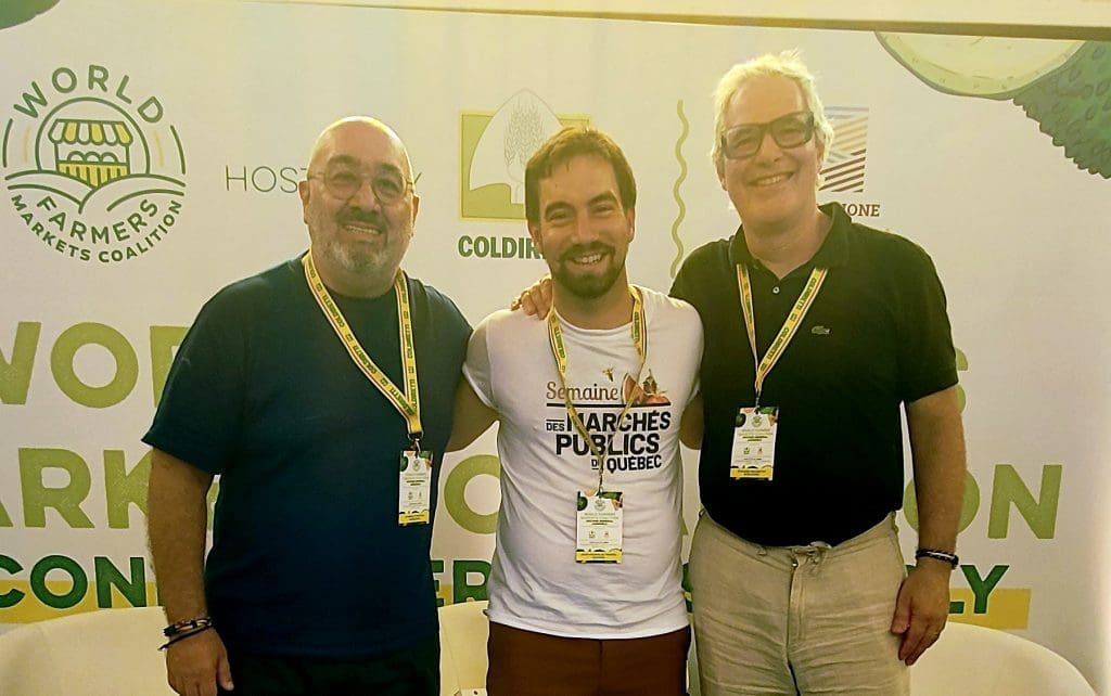 Photo : Carmelo Troccoli, directeur de La World Farmers Markets Coalition, Jean-Nick Trduel, directeur général de l’AMPQ et Richard McCarthy, président de La World Farmers Markets Coalition.